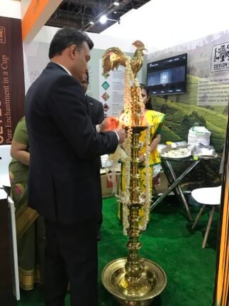 Gihan Jayasinghe, Deputy Chairman, Finlays Colombo Ltd. Lighting the Oil Lamp at the Opening Ceremony of the Sri Lanka Country Pavilion, Organized by the Sri Lanka Tea Board..